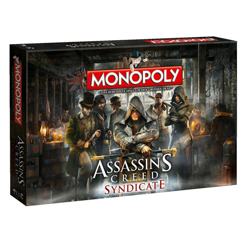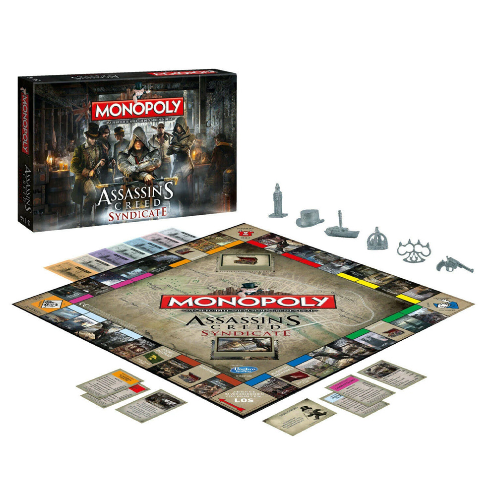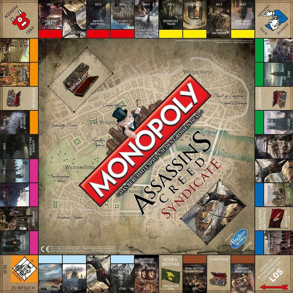 Assassin's Creed Syndicate entführt Dich nach London zur Geburtsstunde der Moderne auf dem Höhepunkt der Industriellen Revolution. Die Assassinen kämpfen um Macht und Respekt und weiten ihren Einfluss mit immer größer werdenden Banden aus, um schließlich die Kontrolle über die Stadt zu übernehmen. Dieses offiziell lizenzierte Monopoly bereitet mit Sicherheit jedem Assassins Creed Fan zahlreiche spaßige Stunden. Die Auflage dieser Variante ist auf 6000 Exemplare limitiert.