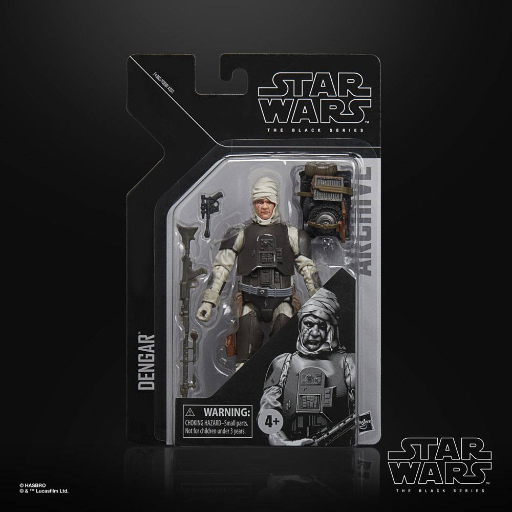 Dengar war zwar grob und lotterig, doch trotzdem ein effektiver Kopfgeldjäger. Während einige Kopfgeldjäger Wert auf Finesse und Stil legten, bevorzugte Dengar Feuerkraft und Zerstörung. Die 15 cm große Black Series Figur ist detailgetreu, sodass sie dem Dengar Charakter aus Star Wars: Die Rückkehr der Jedi-Ritter gleicht und hat ein Premium Design und mehrere Bewegungspunkte.